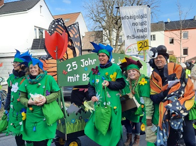 Unsere Teilnahme am Endenicher Veedelszug war ein voller Erfolg! Mit Sonne satt feierten wir als Blumenwiese unser Jubiläum „25 Johr för e jrön Bonn mit Blömscher un Jesumm“.